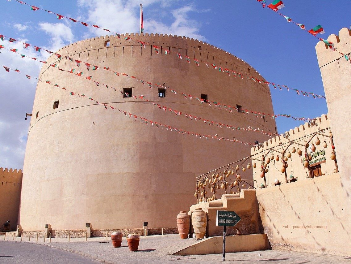 Anschließend geht es weiter in den antiken Stadtteil, vorbei an den Zwillingsfestungen Mirani und Jalali, dem Sultan-Al-Alam-Palast und dem Palast Seiner Majestät Sultan Qaboos. Unser letztes Ziel ist das Al-Zubair-Museum. Es bietet eine Fülle an Wissen über die Kultur, Geschichte und über das nationale Erbe. Wir übernachten wieder in Maskat. Zum Abendessen werden wir im Hotel oder einem lokalen Restaurant erwartet. (FR/AE/Ü)