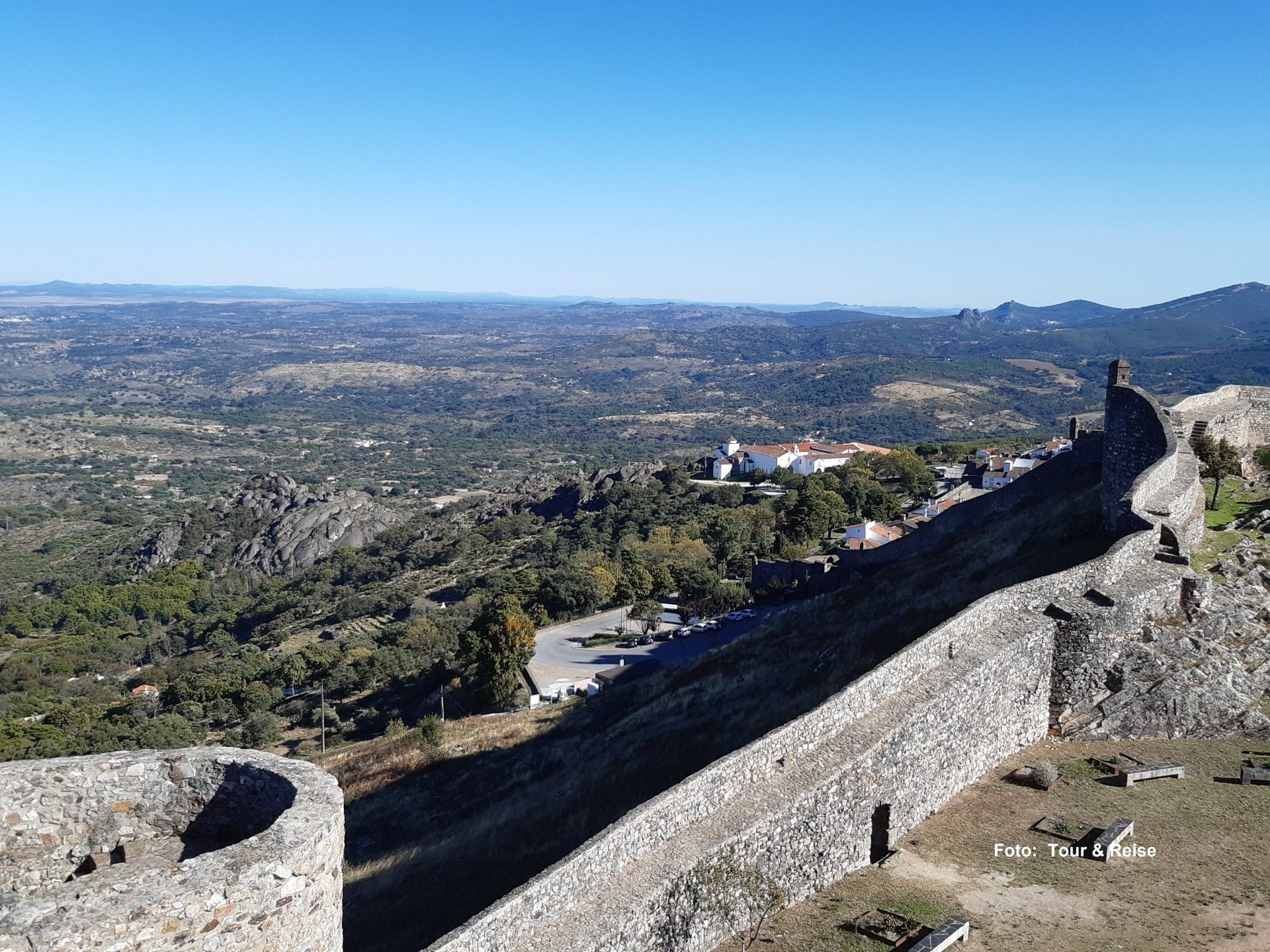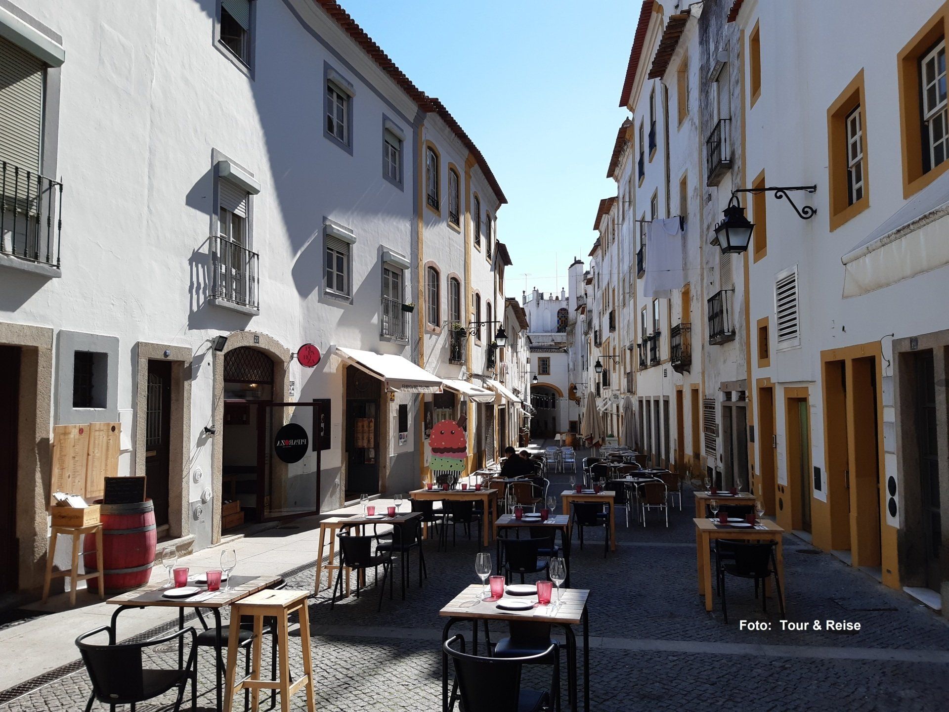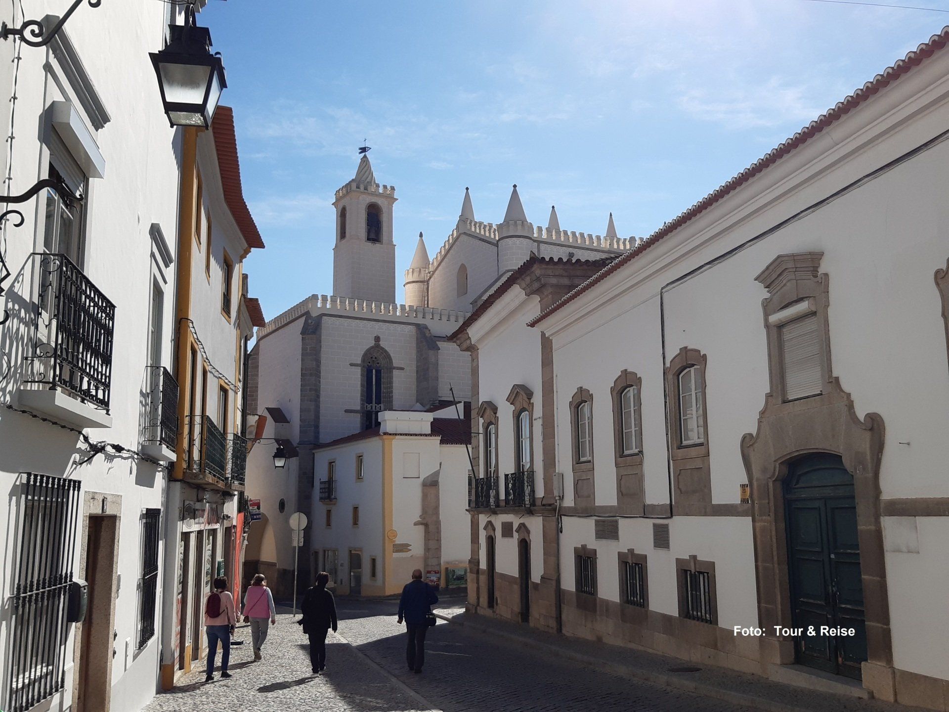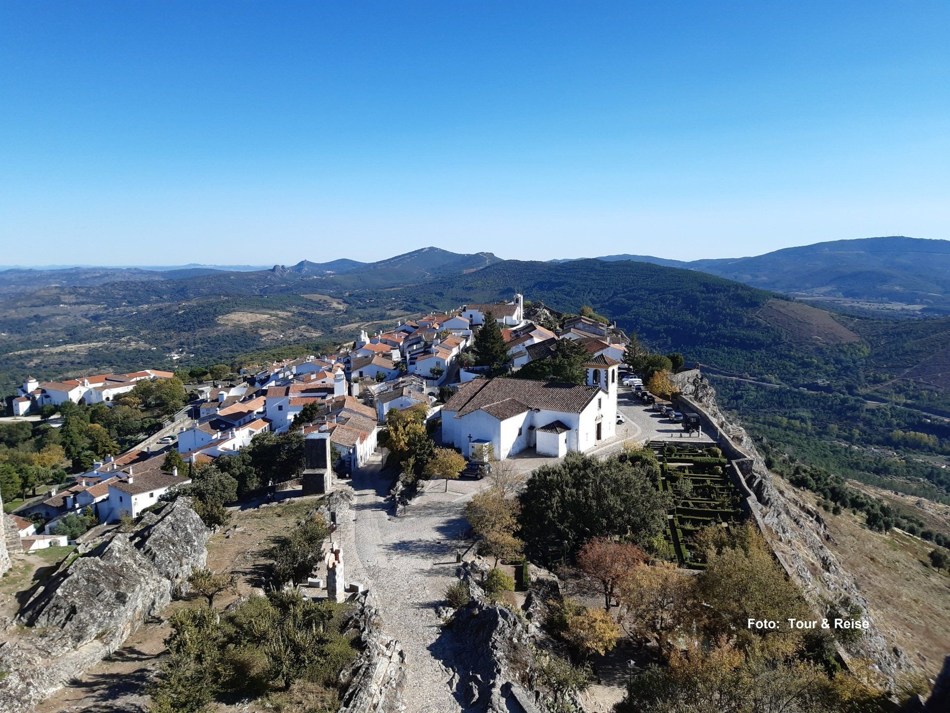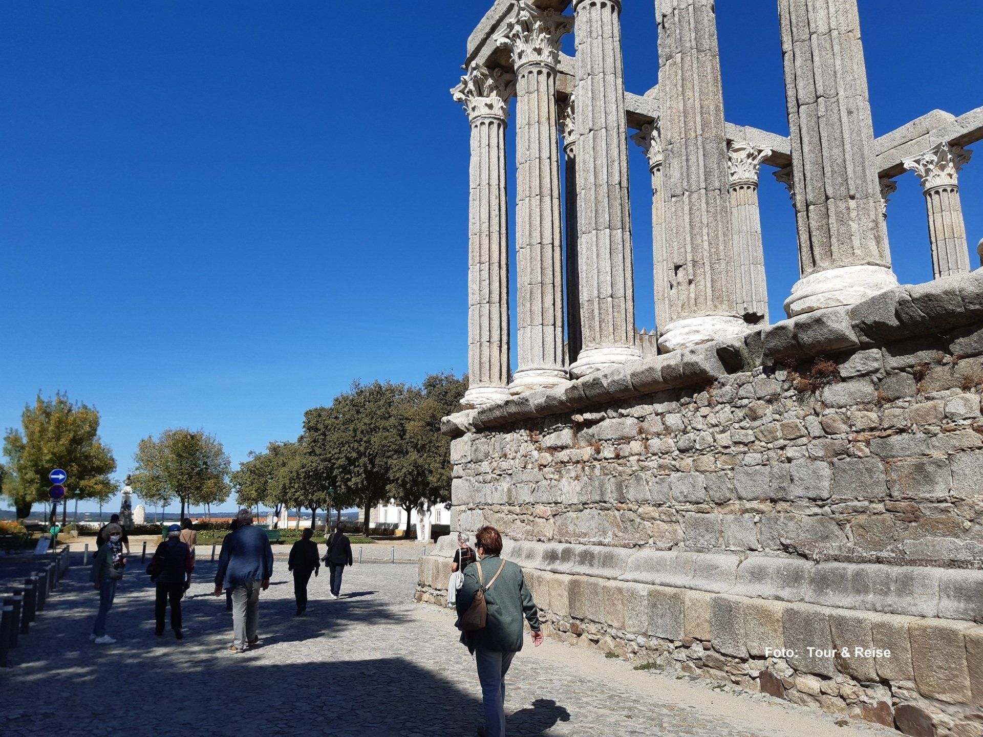 Unser Reiseverlauf entsprach aufgrund der Reisewarnung für die Metropolregion Lissabon nicht exakt der Reiseroute, wie sie in der Karte dargestellt ist. Der Reiseverlauf wurde vor der Reise neu geplant. Anstatt nach Lissabon (6. Tag) sowie nach Sintra und zum Capo da Roca zu fahren (7. Tag), ging es am 6. Tag nach Tomar und Marvao sowie zur Übernachtung ins 4* Hotel nach Evora. Am 7. Tag besuchten wir eine Korkeichenfabrik im Alentejo und die Stadt Evora. Am 8. Tag fuhren wir an die Algarve zur Stadtbesichtigung in Faro und im Anschluss zu unserem 4* Hotel in Quarteira, direkt am Atlantischen Ozean. Der Rückflug am 11. Tag erfolgte von Faro nach Frankfurt/Main.