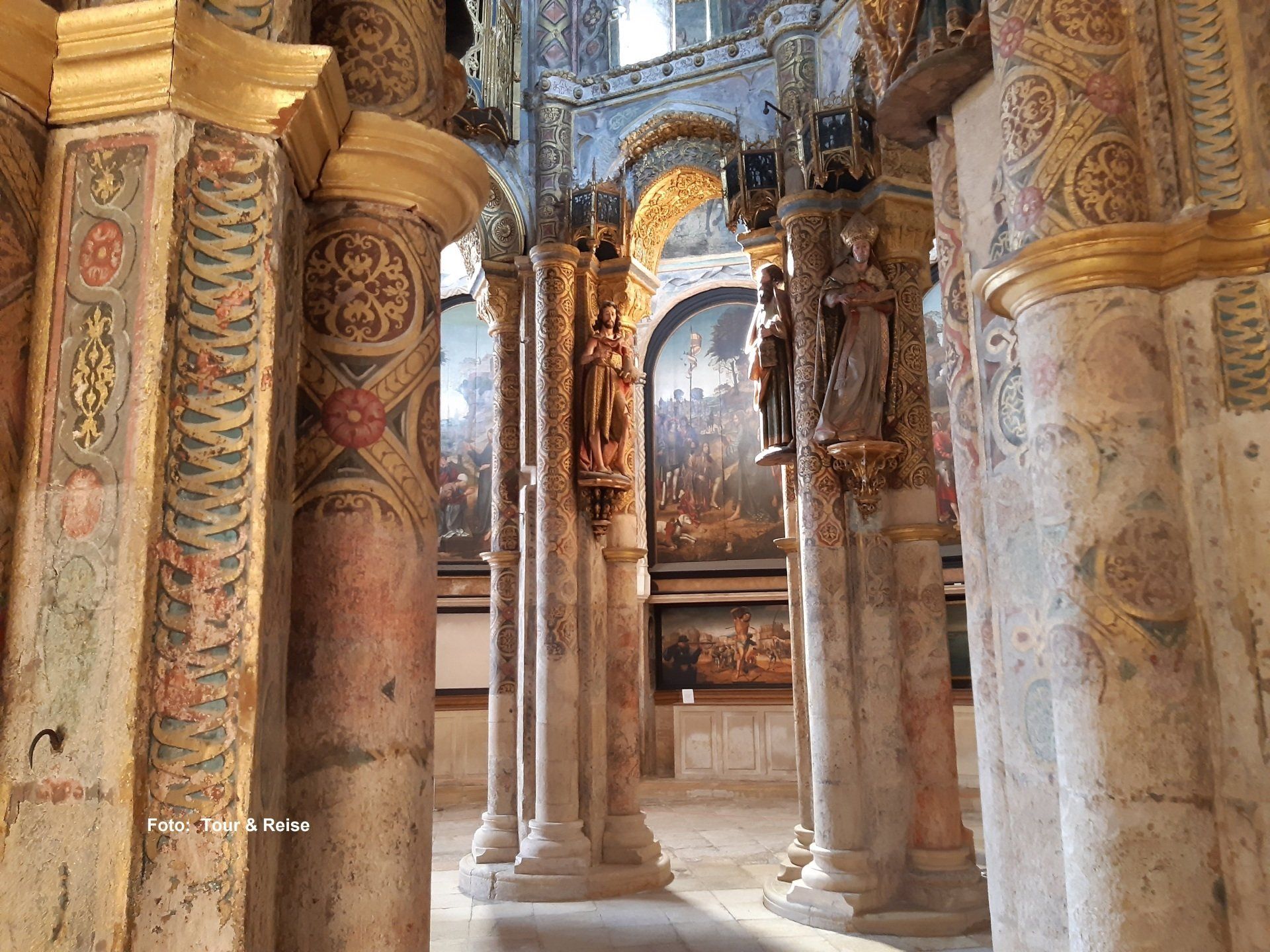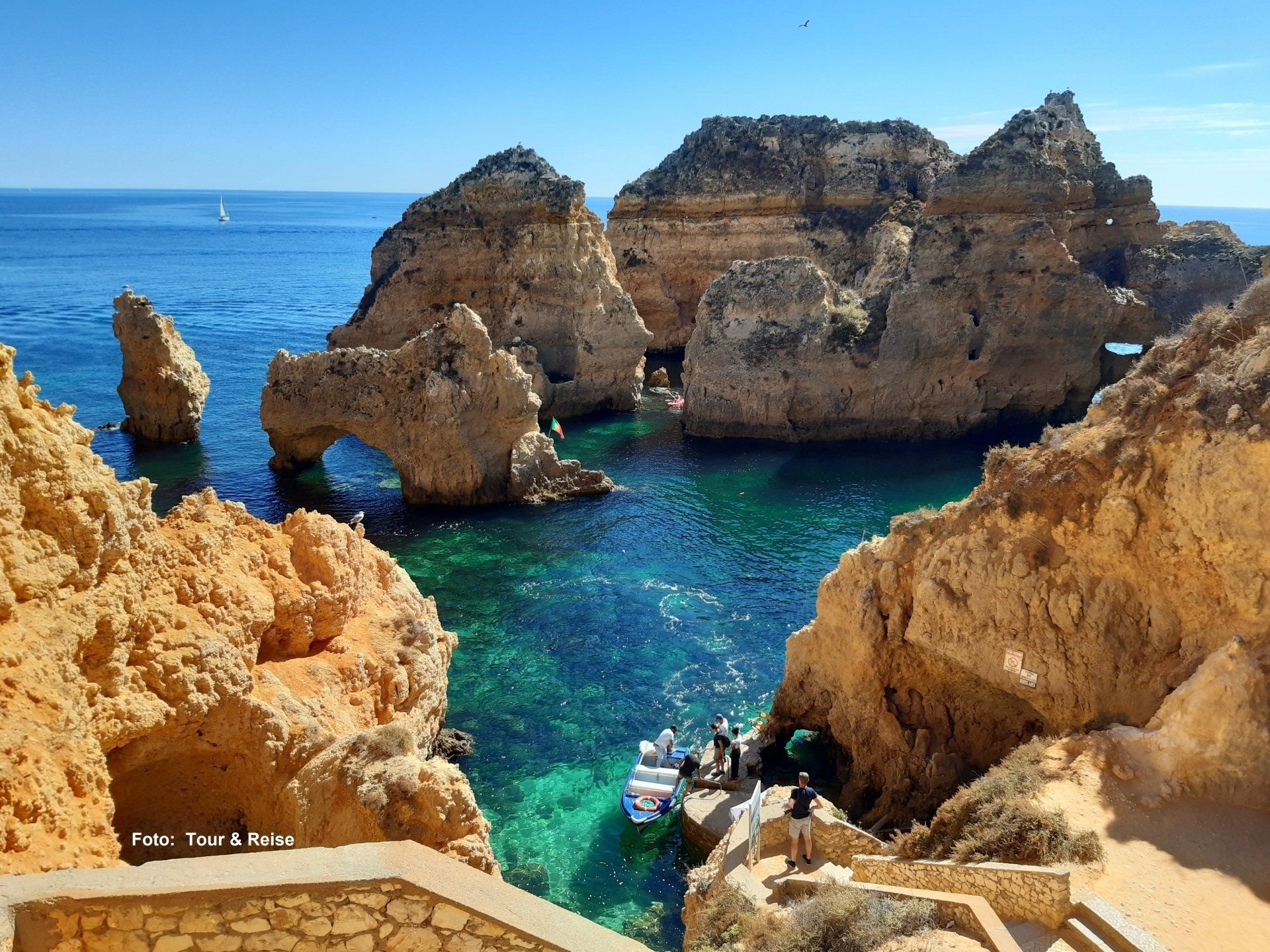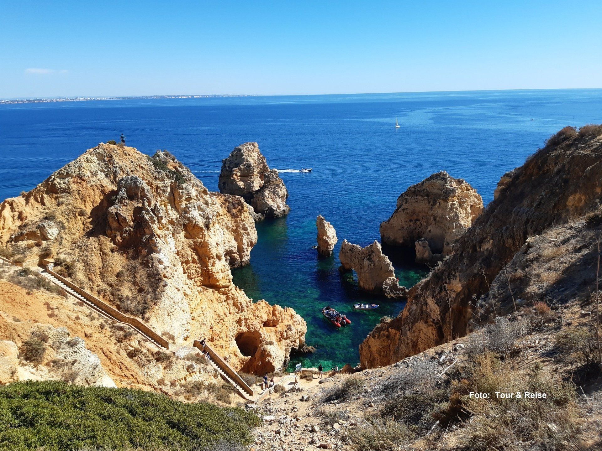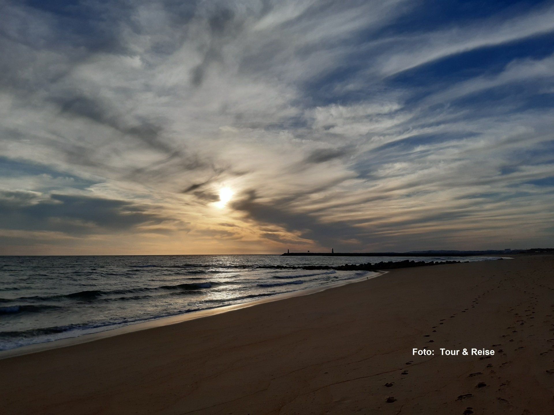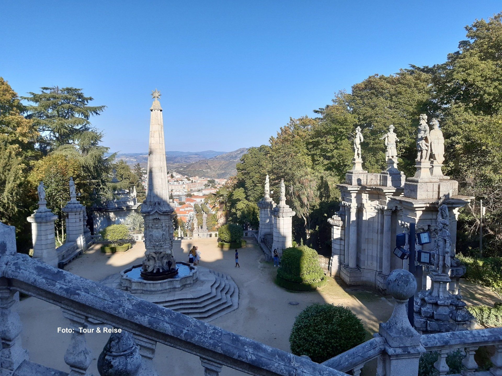 Unser Reiseverlauf entsprach aufgrund der Reisewarnung für die Metropolregion Lissabon nicht exakt der Reiseroute, wie sie in der Karte dargestellt ist. Der Reiseverlauf wurde vor der Reise neu geplant. Anstatt nach Lissabon (6. Tag) sowie nach Sintra und zum Capo da Roca zu fahren (7. Tag), ging es am 6. Tag nach Tomar und Marvao sowie zur Übernachtung ins 4* Hotel nach Evora. Am 7. Tag besuchten wir eine Korkeichenfabrik im Alentejo und die Stadt Evora. Am 8. Tag fuhren wir an die Algarve zur Stadtbesichtigung in Faro und im Anschluss zu unserem 4* Hotel in Quarteira, direkt am Atlantischen Ozean. Der Rückflug am 11. Tag erfolgte von Faro nach Frankfurt/Main.