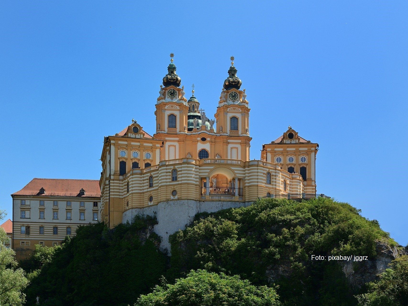 In Melk angekommen, besuchen wir das Benediktinerstift Melk. Es ist eines der größten barocken Architekturensembles Europas und steht auf der Liste des UNESCO-Welterbes. Bekannt wurde das Stift auch durch Figur des Adson von Melk im Roman „Der Name der Rose“. Nach der Besichtigung fahren wir mit dem Bus zu unserem Hotel zurück. FR/AE/Ü